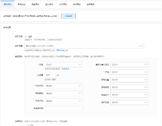 类目选择完毕,点击下一步,这是宝贝基本信息的录入,这个里面也是十分有玄机的,在变幻莫测的淘宝帝国中,了解以下几项基础的江湖门道,可以让你少走很多弯路,我们可以看到这个页面中,有红颜色的标记符号,这个符号对应着的都是所谓的权重,也是必填项,一个店铺想要让人对你产生信任感,基本信息不能少。